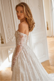 グリッターチュールと美しいレースを重ねた
