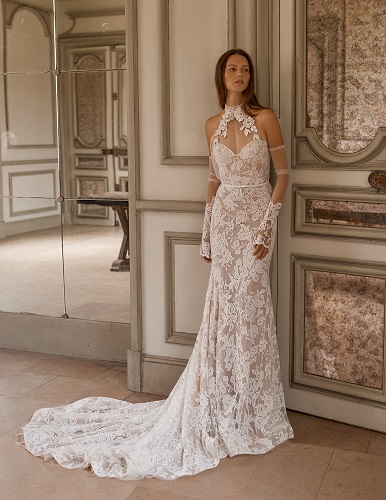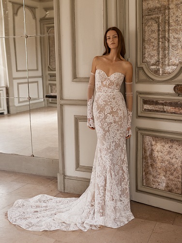 繊細でフェミニンなレースが印象的なマーメイドドレス。