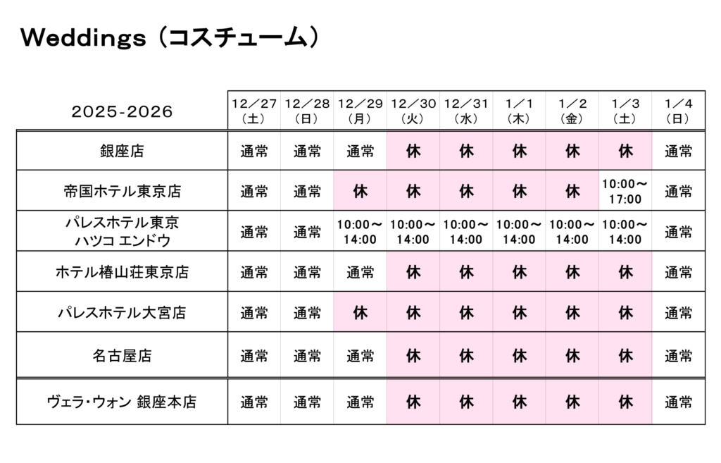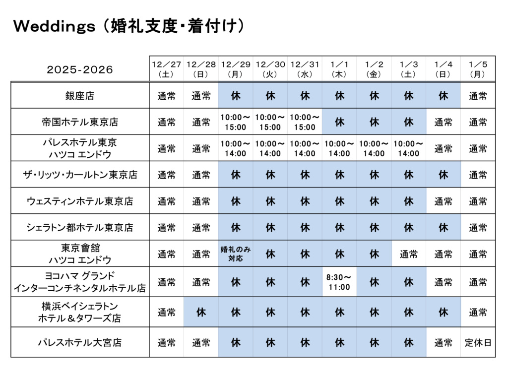 Hatsuko Endo 各店の年末年始・営業につきましてご案内を申し上げます。